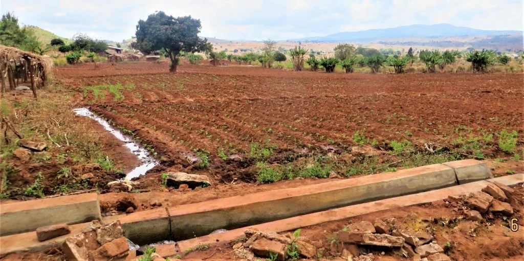 Water now passes along the cement-lined channel, irrigating the 27 ha of land in which crops of Maize, Tomatoes, beans, vegetables and many other crops are flourishing.