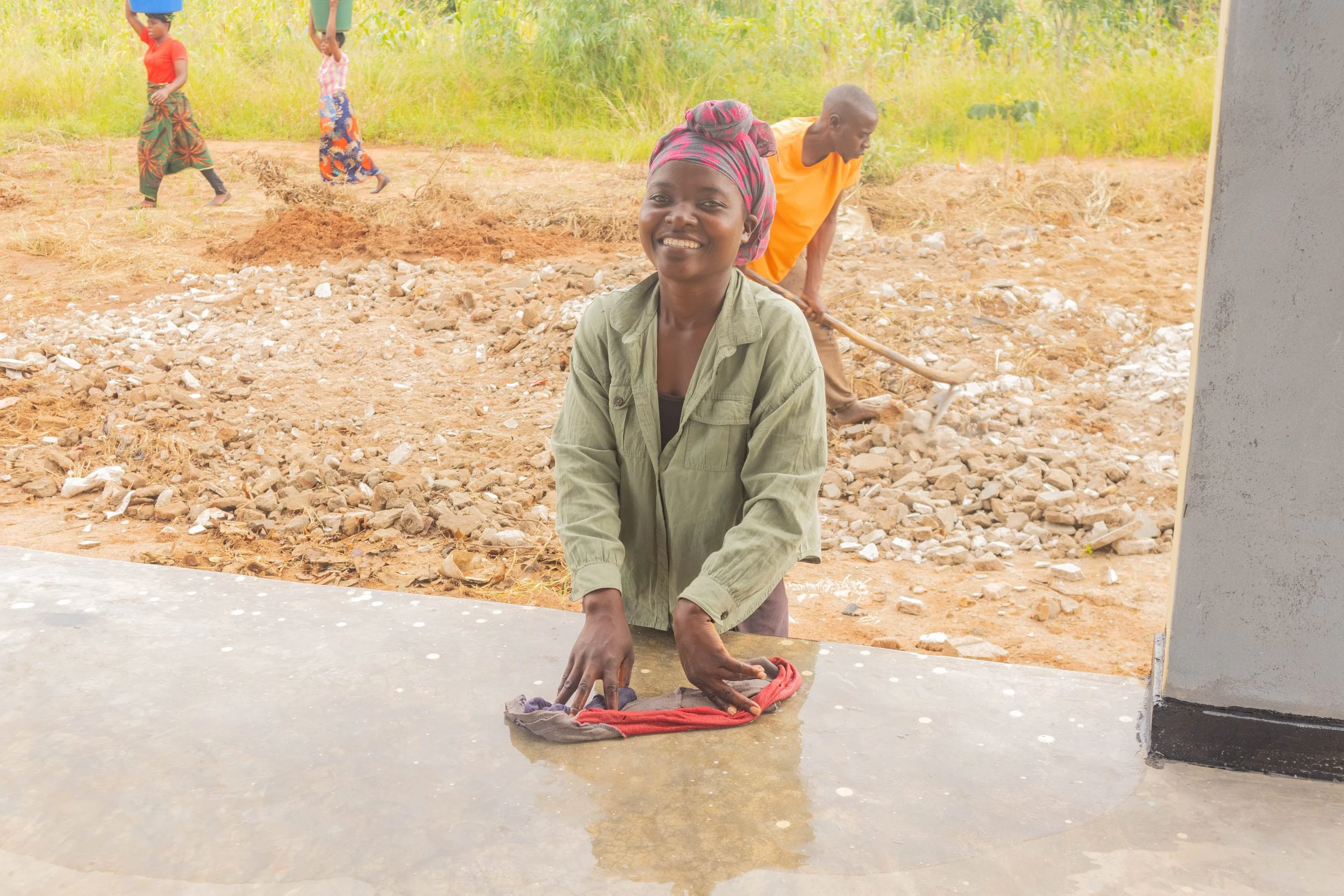 Men and women are actively contributing, cleaning the site, fetching water, and supporting construction, demonstrating a shared commitment to building a solution that will serve them for years to come.