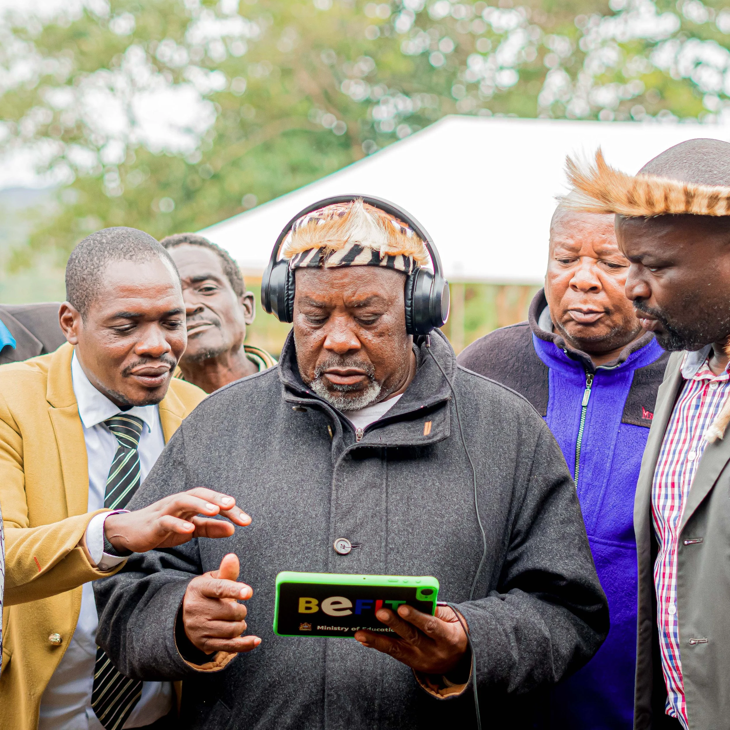 Chief Mthwalo interacts with the BEFIT learning Tablet